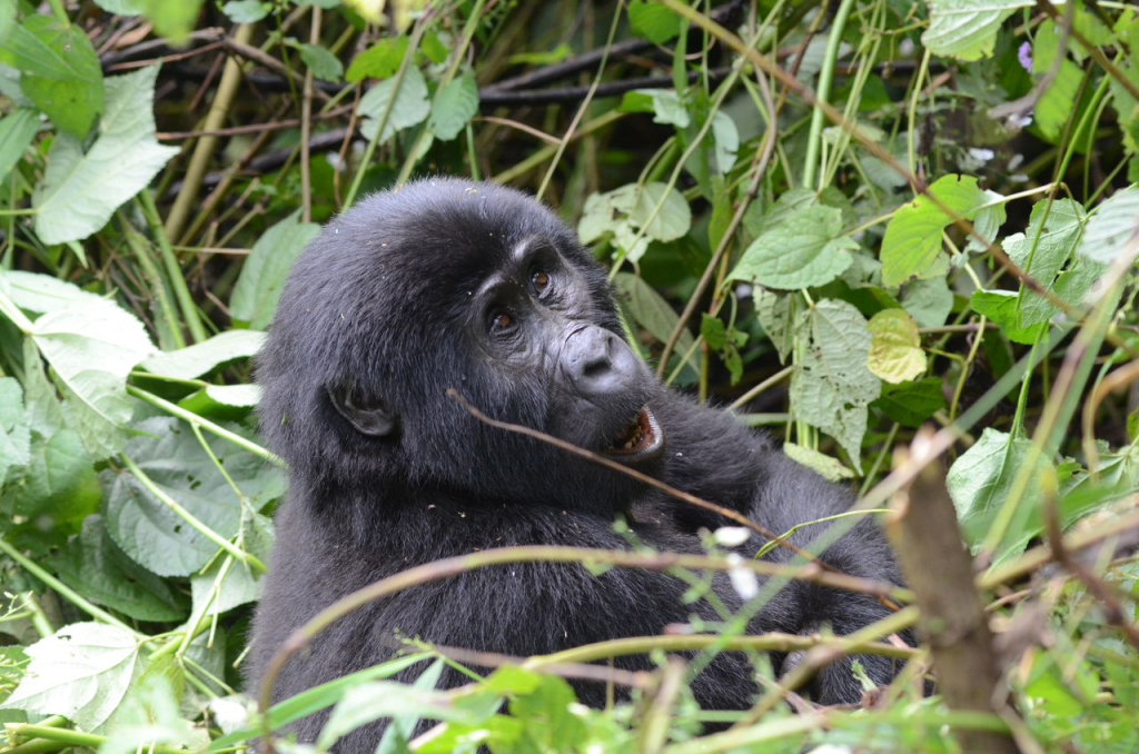 But suddenly the guide stops. Hand up. Silence. Then you see black fur. Big back. Slow move. The gorilla family is there. Just a few meters. Time stops.